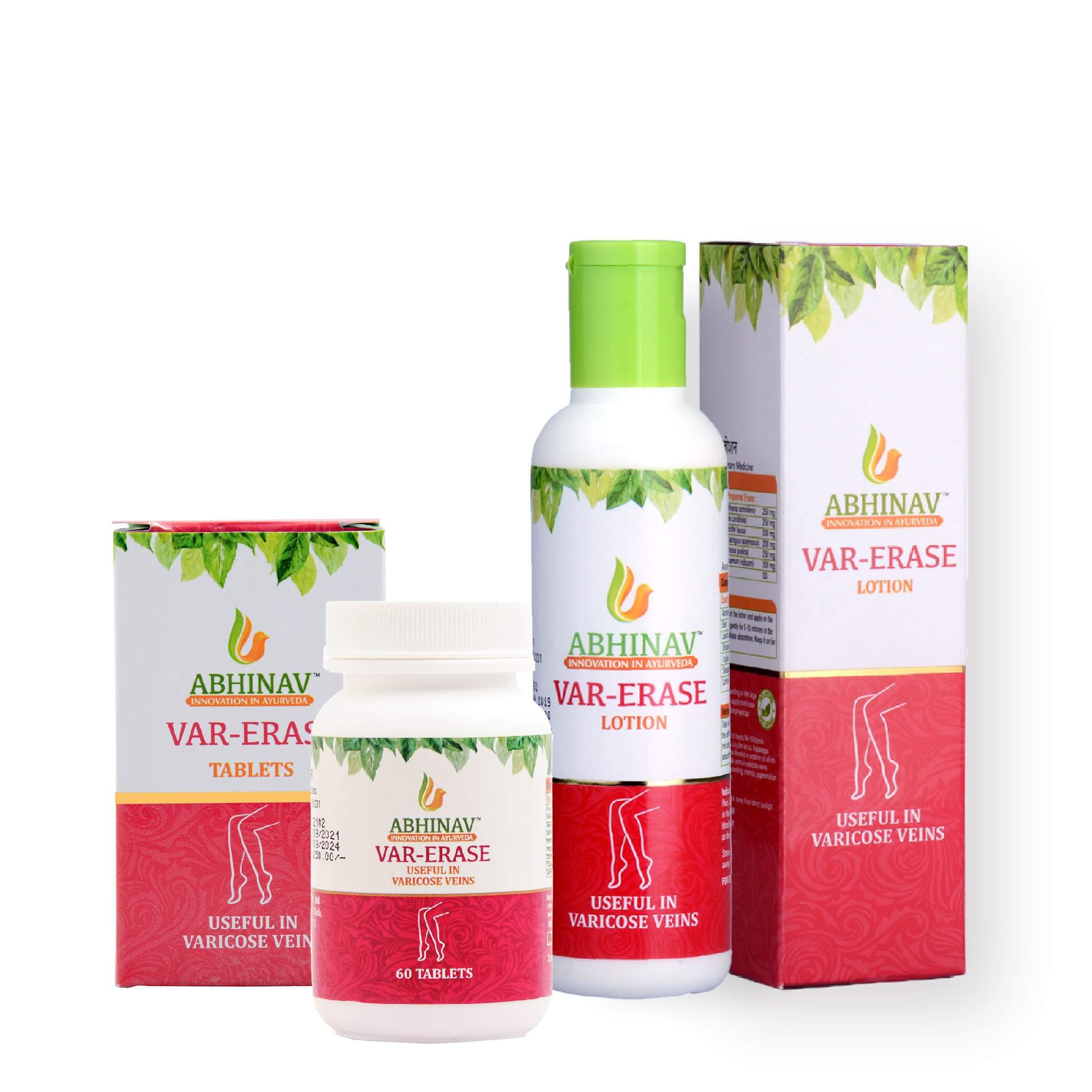 - Clean the affected leg thoroughly, take a sufficient quantity of Var-Erase lotion on your palm, apply it to the leg slowly in an upward direction, and massage for 5-10 minutes.